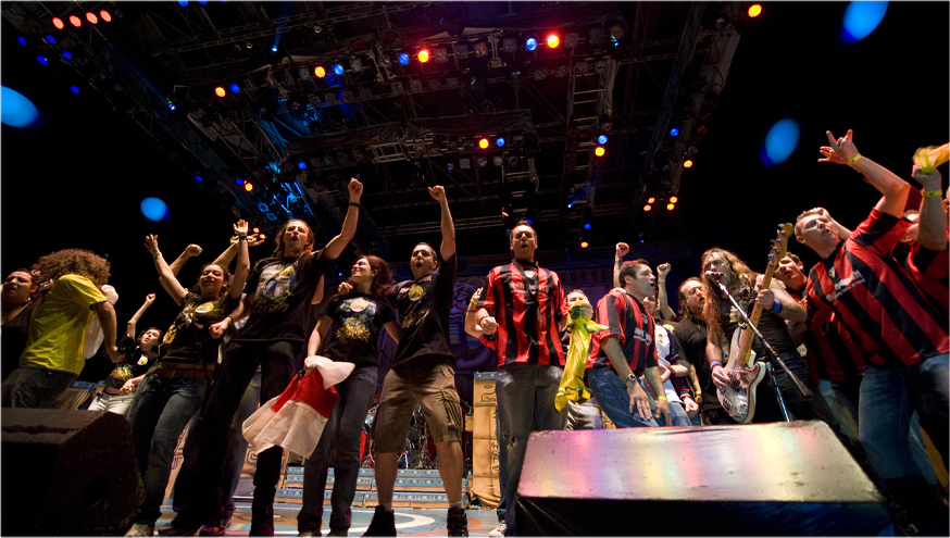 また、各エリアでのライヴ収録はもちろんのこと、なんといっても遠征を楽しむメンバーたちのプライベートな瞬間が切り取られているのが実に興味深い。アイアン・メイデンは、従来メディア露出を極力避け、その裏側は謎に包まれていたが、今回の〈サムホエア・バック・イン・タイム・ワールド・ツアー〉では初めて撮影クルーにフル・アクセスを許可。ステージだけでなく、合間にテニスやゴルフを楽しむ様子、ロケバスでの和気藹々としたやりとり、ユーモア溢れるメンバーたちの振る舞いなど見どころ満載。